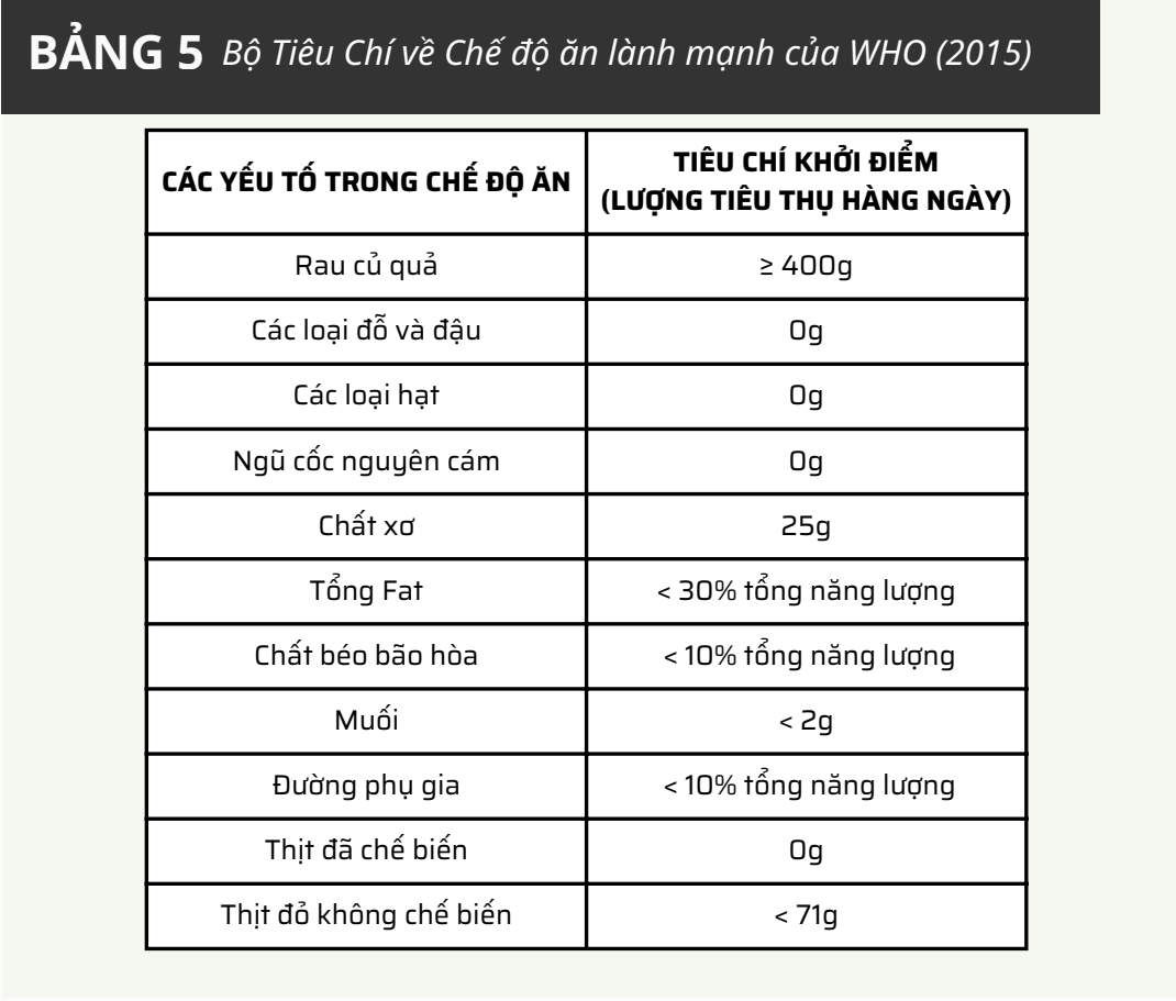 Bộ tiêu chí về chế độ ăn lành mạnh đưa ra bởi Tổ Chức Y Tế Thế Giới (bản năm 2015). Xác định “chế độ ăn lành mạnh” là một trong những chủ đề được thảo luận trong một bài viết tạiTập San Tháng 03/2024.