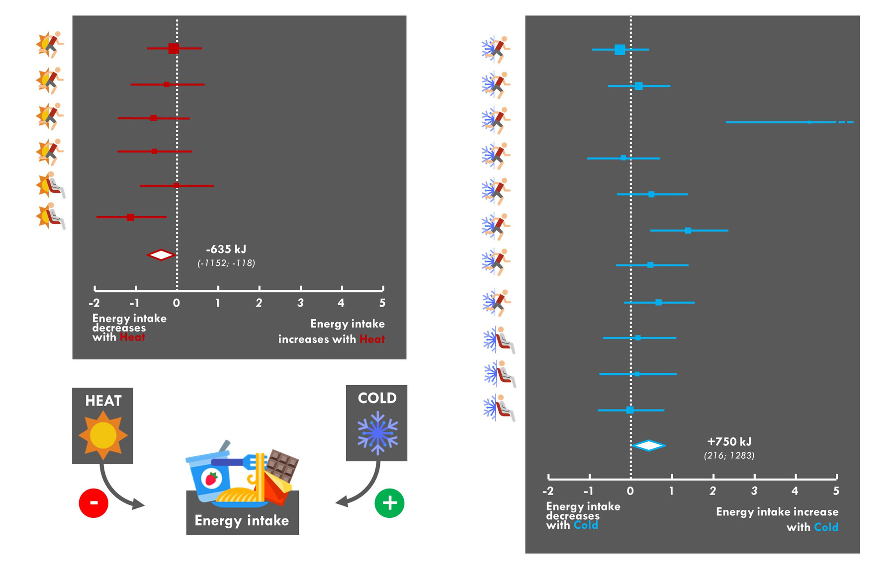 Xông hơi (sauna) hay rộng hơn là phơi nhiệt/ngâm nóng (heat exposure/heat immersion) có thể giúp kiểm soát vị giác và cảm giác thèm ăn. Đáng chú ý, một mẹo hứa hẹn giúp hỗ trợ giảm mỡ nhưng theo chiều hướng ngược lại thường được nhắc đến là “ngâm lạnh” hay “phơi lạnh” (cold exposure). Tuy nhiên, trong nhiều tình huống hiệu ứng ngược lại được ghi nhận - bạn cảm thấy đói hơn và thèm ăn hơn sau khi ngâm mình trong nước đá, trong khi hiệu ứng tăng tiêu hao năng lượng do kích hoạt mỡ nâu gần như không nhằm nhò gì so với mức độ khó chịu của việc co quắp trong bồn nước đá. Tiếp xúc nhiệt (như xông hơi) có thể giúp giảm cảm giác thèm ăn và năng lượng tiêu thụ trong ngắn hạn, như được ghi nhận trong meta-analysis này. Thậm chí hiệu ứng ức chế vị giác của tập luyện có thể được cho là đến từ sự kết hợp của áp lực nhiệt (đặc biệt trong thời tiết nóng nực) và hiệu ứng của các chất chuyển hóa sản sinh trong tập luyện trong tập luyện. Tuy nhiên, lạm dụng áp lực nhiệt có thể gây nguy hiểm đến tính mạng, vì vậy nó nên được sử dụng một cách thận trọng.