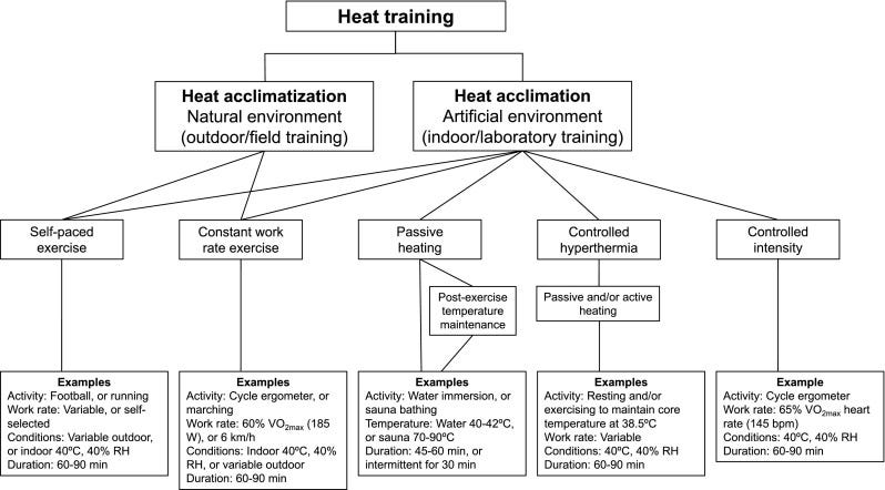 Thời lượng của một buổi Heat training thường được áp dụng là ~1 tiếng, bắt đầu với cường độ cao hơn nhằm đưa thân nhiệt lên 38.5⁰C sau đó giảm cường độ.
