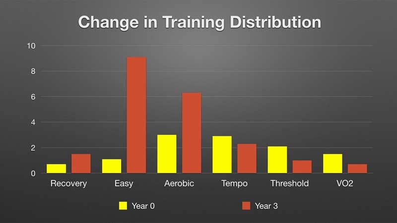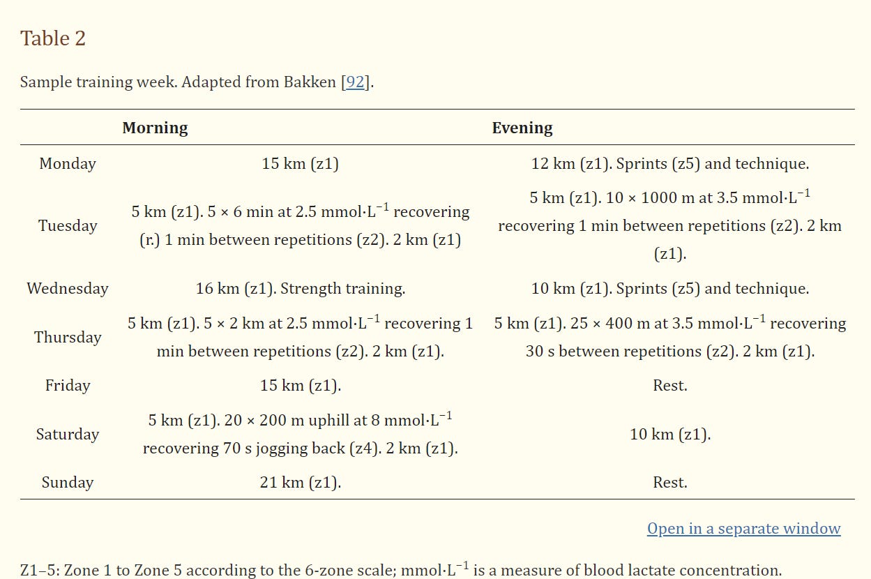 Đặt vào bối cảnh một VĐV chuyên nghiệp, những người này có trình độ thể lực cao, và chắc chắn cũng có khả năng chịu đựng cường độ tập luyện lớn, tuy nhiên khả năng hồi phục của cơ thể họ có hạn. Vì vậy lượng Volume cường độ cao của họ sẽ là thứ bị hạn chế nhiều nhất. Trong khi đó, tập luyện ở cường độ thấp hơn (Z2 hoặc thấp hơn) không những gây ít áp lực hơn, mà còn có thể giúp họ phục hồi nhanh hơn và tạo nền móng để họ xây dựng thể lực tốt nhất của mình khi tập luyện ở cường độ cao hơn. Với Volume tập luyện hàng tuần khá lớn, cũng không lạ gì khi những người này dành đến 70 - 80% Volume tập luyện ở những khoảng cường độ thấp hơn.
