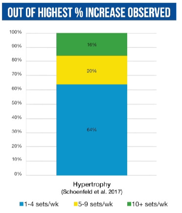 Tóm lại, “chỉ 1 Set/tuần”, kể cả khi đã tối ưu hết về các yếu tố khác trong tập luyện, sẽ chỉ “đủ” để thúc đẩy tiến bộ rõ rệt ở những người mới bắt đầu tập luyện trong khoảng 1-2 năm đầu tiên, sau đó tốc độ tiến bộ sẽ chậm lại rõ rệt đến mức bạn sẽ cảm thấy khó có thể phân biệt với hiện tượng “chững” tiến bộ. Trên thực tế, hiếm ai sẽ chỉ tập có đúng 1 Set mà thường sẽ tập gấp 5 hay thậm chí 10 lần số này (5 - 10 Sets/nhóm cơ/tuần). Mức Volume này, kết hợp với sự cải thiện về các yếu tố khác theo thời gian (kinh nghiệm/kĩ năng tập luyện, lựa chọn bài tập, nỗ lực), có thể đem lại tiến bộ trong thời gian dài hơn, nhưng nhìn chung sẽ “vấp” phải trở ngại như trên: tiến bộ chậm lại cho đến khi chậm đến mức như thể đã “chững”.