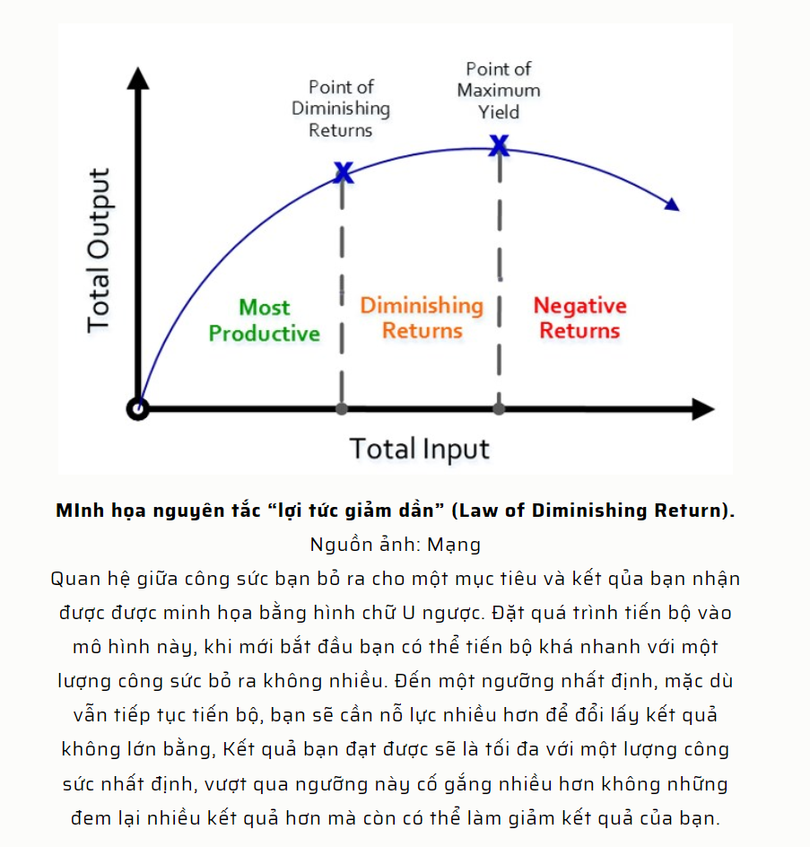 Ở trên là một số tình huống phản ánh tâm lý phổ biến đằng sau những quyết định tăng Volume. Chúng đều có điểm chung là, tốc độ tiến bộ không đủ nhanh. hay thay đổi không rõ rệt như mong muốn. Rất có thể bạn vẫn đang tiến bộ, chỉ là với tốc độ tương ứng với trình độ của bản thân - và có xu hướng chậm hơn ở trình độ cao hơn.